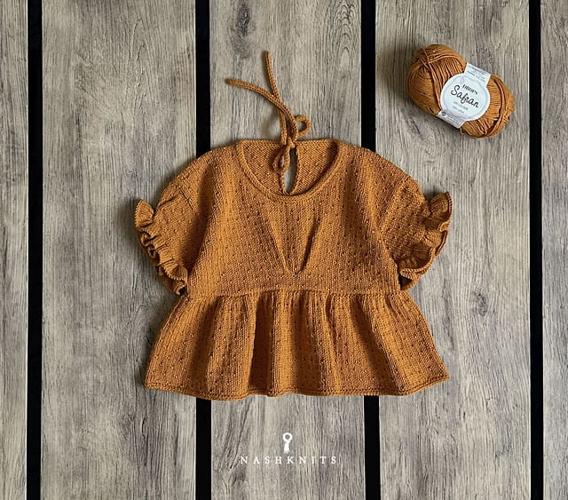 Verspielt, leicht und mit ganz viel Liebe zum Detail: Das Swiss Dot Top von Nashknits ist ein Sommertraum für kleine Modefans! Feine Lochmusterpunkte, süße Falten im Brustbereich, elegante Rüschenärmel und ein Schlüsselloch-Verschluss im Nacken – dieses Shirt vereint zarte Details mit einer klaren Form.